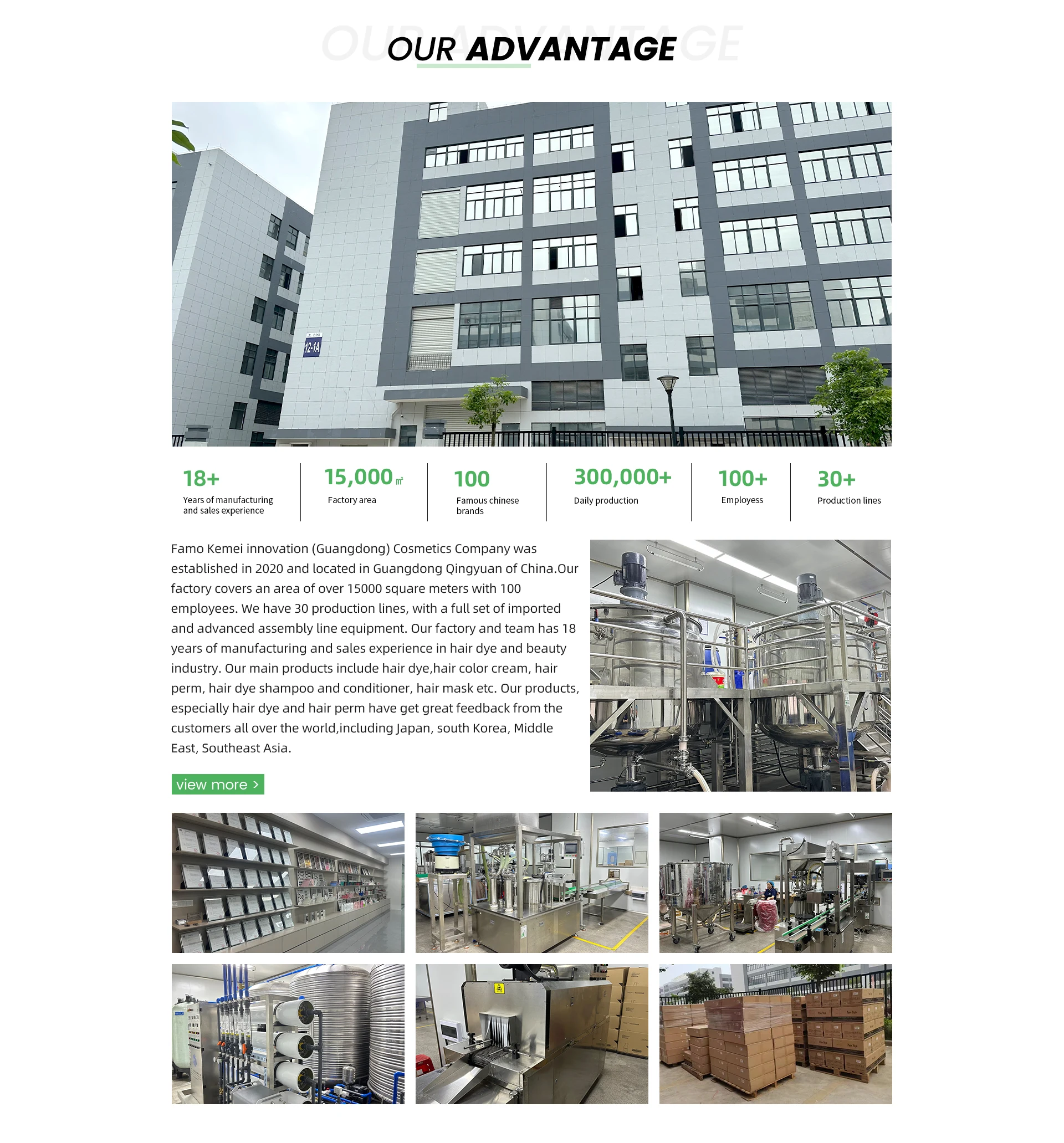 Famo Kemei innovation (Guangdong) Cosmetics Company was established in 2020 and located in Guangdong Qingyuan of China.